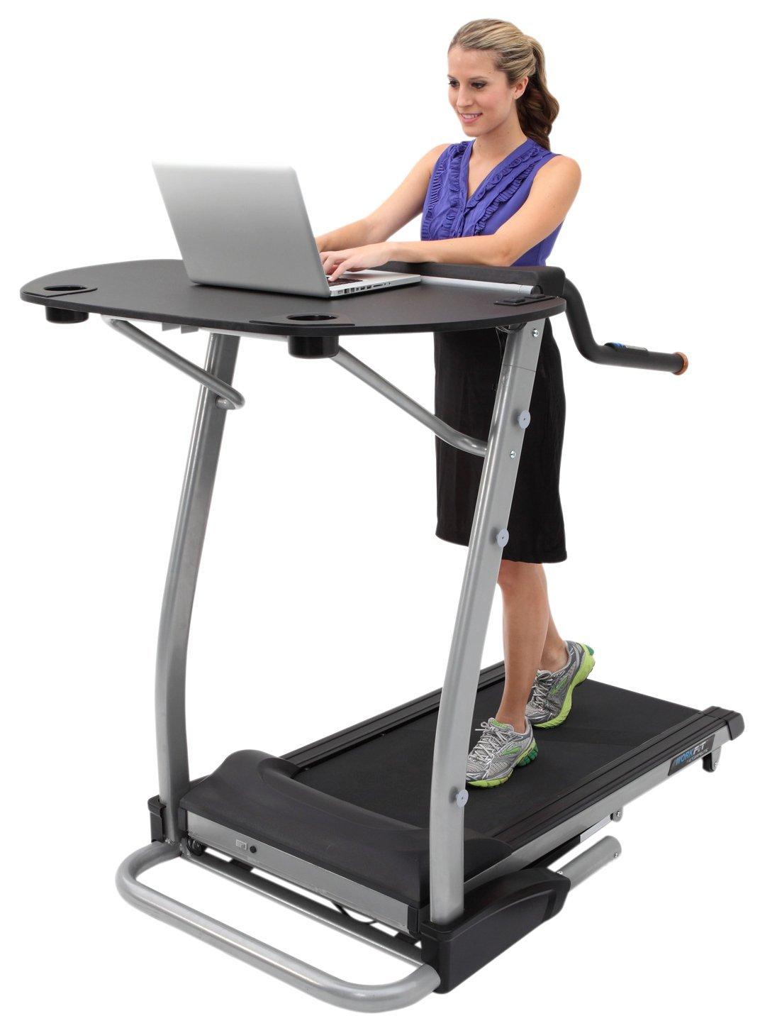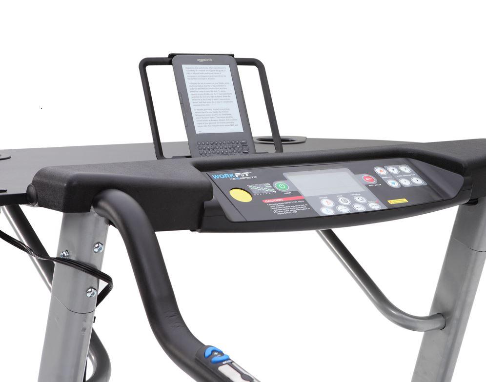 Don't let your work interfere with your workout! The Exerpeutic® 2000 "Workfit" high-capacity desk station treadmill combines both, letting you burn calories as you take care of business. The treadmill itself features extra-long safety handles and a power incline up to 15%, while the desk top has 2 cup/article holders, an AC outlet station, pre-drilled cord holes, and a foam arm support. It accommodates a keyboard, monitor, mouse and more!